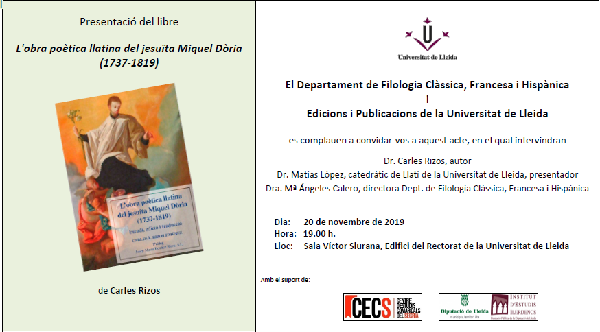Lloc: Sala de Juntes 2n pis (Facultat de Lletres, Campus del Rectorat), plaça Víctor Siurana, 1. 25003, Lleida.