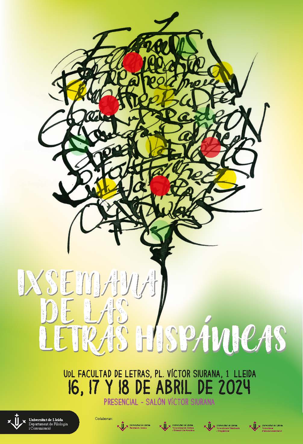 La IX Setmana de les Lletres Hispàniques es va celebrar els dies 16, 17 i 18 d'abril de 2024, en format presencial, a la Sala Víctor Siurana de l'Edifici del Rectorat de la UdL.