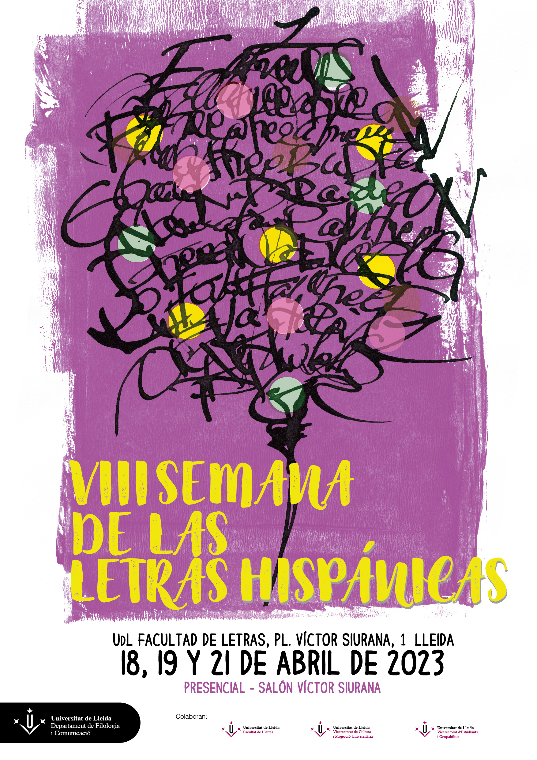 La VIII Setmana de les Lletres Hispàniques es celebrarà els dies 18, 19 i 21 d'abril de 2023, en format presencial, a la Sala Víctor Siurana de l'Edifici del Rectorat de la UdL.