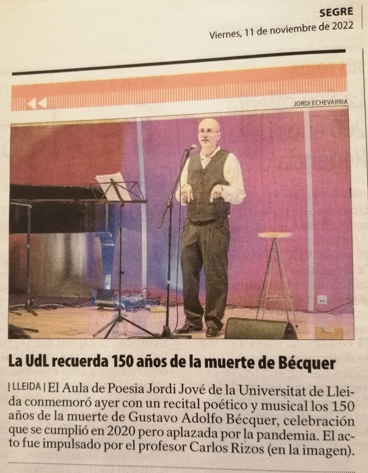 Recital poético y musical para commemorar el 150 aniversario de la muerte de Gustavo Adolfo Bécquer